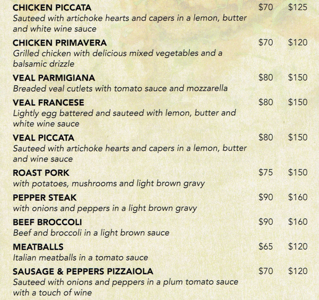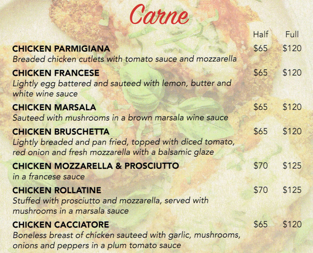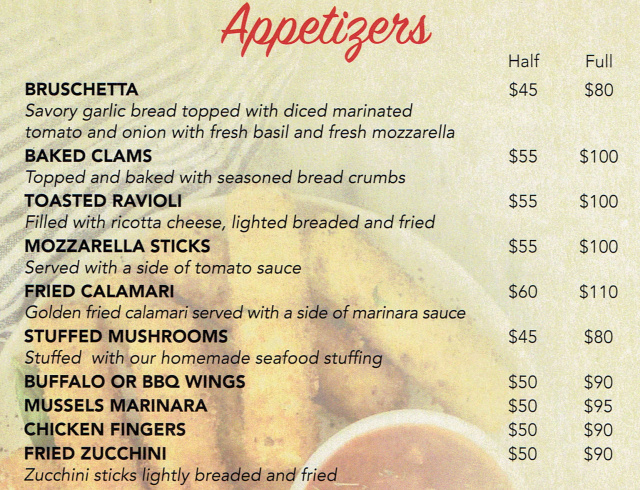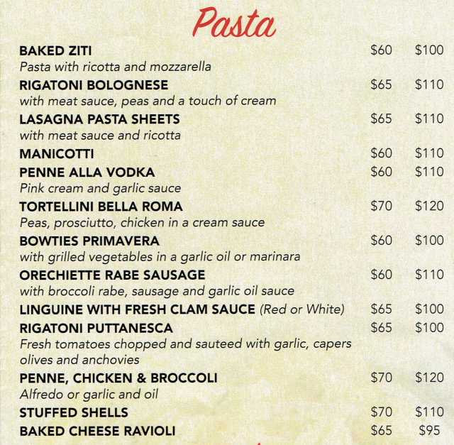 * Bella Roma Catering Menu * On Premise and Off Premise Catering Available * 631-732-3000