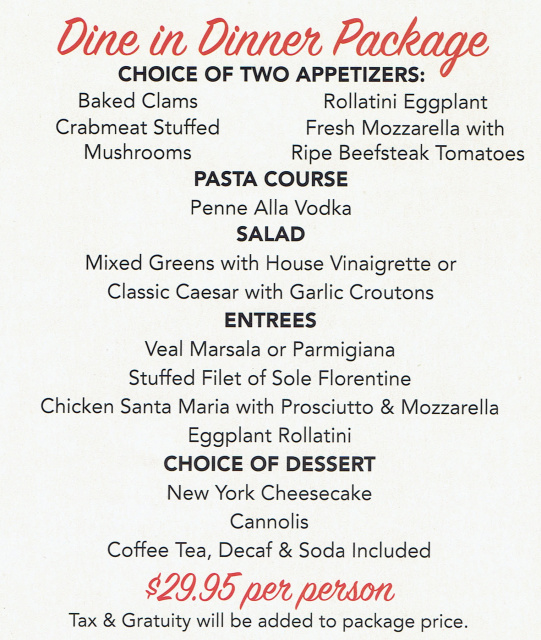 Bella Roma of Coram Dine-In Dinner Package - For Parties Only - Catering Dinner Package